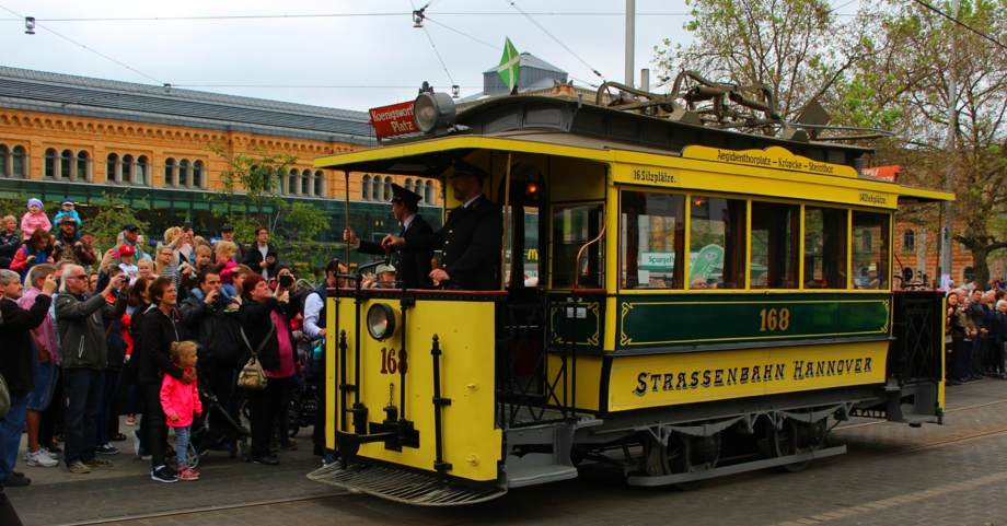 Ein Jubiläum begeht man zünftig. Zu dem Jubiläum eines Verkehrsbetriebs gehört ein Fahrzeugkorso dazu, das war uns als Förderverein von vornherein klar. Also setzte sich Fritz mit unserem zu feiernden Mutterunternehmen zusammen und man fand einen Termin. Durch das Projekt 10/17 und die notwendigen Umbauten entlang der oberirdischen Innenstadtstrecke, wurde eine längere Unterbrechung dieser notwendig und die und die damit verbundene Stilllegung der Strecke Aegidientorplatz – Hauptbahnhof auf den frühen Morgen des Himmelfahrtstages gelegt. So bot es sich an, die Bauarbeiten erst mittags beginnen zu lassen, um den Vormittag für den Korso auf eben dieser Strecke zu nutzen, für die es dann gleichzeitig der Abschied wurde. Es gab viel zu planen und vor allem viel zu tun. Einige wenige unseres Vereins leisteten mal wieder unendlich viel Arbeit, allen voran natürlich unser Chef Fritz. Viele Fahrzeuge waren Wochen vorher und manche noch Tage vorher, noch weit davon entfernt mit eigener Kraft teilzunehmen, einer sogar nicht mal verbunden mit seinem Fahrgestell. Letztendlich hat (fast) alles geklappt, nur Tw 601 wurde halt leider nicht fertig. Aber das wird er noch und dann werden wir ihn präsentieren. Es wurde viel fotografiert und viel gestaunt. Wir durften in viele glückliche und zufriedene Gesichter blicken. Jede Mühe hat sich gelohnt! Herzlichen Glückwunsch liebe ÜSTRA, auf die nächsten 125 Jahre! Tausend Dank an alle, die diesen Korso möglich gemacht haben! Bei der ÜSTRA, bei uns im Verein und in unserem Partnerverein dem HSM. Ihr dürft alle stolz auf euch sein, denn das ist alles keineswegs selbstverständlich. Und Tausend Dank an alle, die uns durch ihr Interesse und Dabeisein belohnt haben. Danke! Wir sehen uns auf den kommenden Veranstaltungen, denn 125 Jahre darf man ruhig den ganzen Sommer feiern.