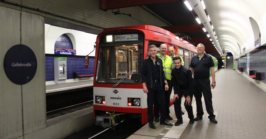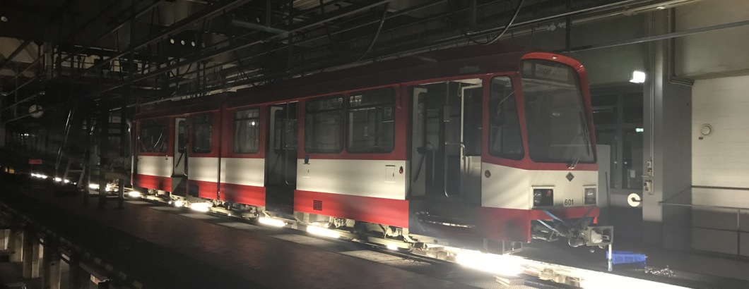 Aber auch die gesamte Türsteuerung musste umgebaut werden. Der Wagen war 1970 für schnelle Haltestellenaufenthalte konzipiert: Die Türsteuerung meldete dem Fahrer bereits „Abfahrt“, sobald die Türen geschlossen waren. Die Trittstufen schlossen sich dann erst während der Fahrt. Während das bei dem einen oder anderen vielleicht Kindheitserinnerungen an die ersten Jahre mit den TW 6000 weckt, ist das heute jedoch nicht mehr denkbar. Die Schaltung wurde derart umgebaut, dass jetzt das „Abfahrt-Signal“ erst ertönt, wenn auch die Trittstufen angehoben und verschlossen sind. So wie wir es von allen unseren Stadtbahnen gewohnt sind.