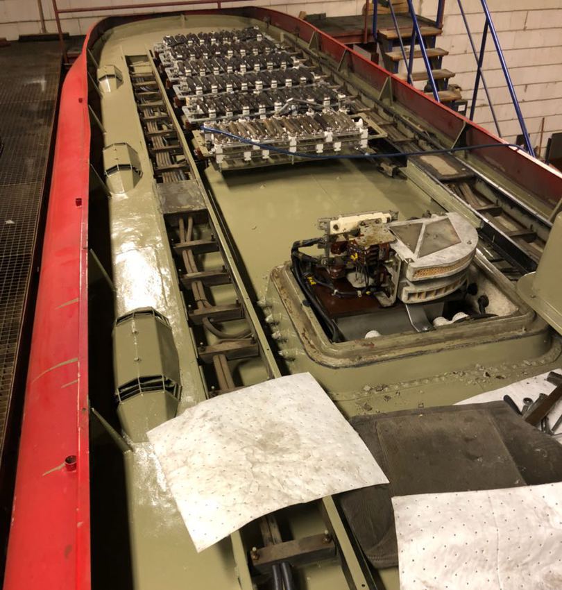 Noch müssen sämtliche elektrischen Anschlüsse der Klapptrittstufen (unterm Wagen) erneuert werden, da viele Steckverbindungen offen liegen und verrostet sind. Manche Trittkontakte funktionieren daher nicht. Für den Betrieb in Hannover soll der Wagen natürlich auch eine Meldeübertragungsanlage (Signal- und Weichensteuerung) bekommen. Dafür muss Platz geschaffen und Kabel verlegt werden. Ebenso muss ein Prüfbericht geschrieben werden, der die Überprüfung sämtlicher Bauteile und Leitungen nachvollziehbar dokumentiert. Es ist also viel geschafft, aber auch noch viel zu tun. Man muss auch bedenken, dass die Mitglieder, die hier schrauben, auch gleichzeitig den laufenden Fuhrpark bewirtschaften. Aktuell steht z.B. der TW 522 zur großen Inspektion an und das wird viel Werksattkapazität binden.