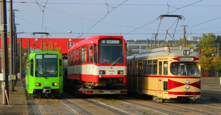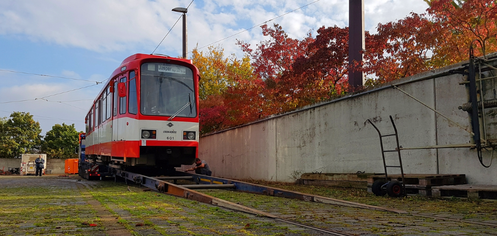 In den frühen Abendstunden des 17.10.2016 machte sich eine Delegation des Fördervereins STRASSENBAHN HANNOVER e.V. auf den Weg nach Bremerhaven, um unser Baby, den Tw 601, nach Hause zu holen. Um ca. 23:20 Uhr setzte sich der Konvoi in Bewegung Richtung Hannover. Unser Weg führte uns vorbei an Bremen und Hamburg, bis wir dann um 3:30 Uhr auf dem Betriebshof in Döhren ankamen. Gebührend wurde der Wagen von einigen Vereinsmitgliedern in Empfang genommen. Der Tw 601 hat dann die Nacht neben seinem "Kind" dem Tw 6001 verbracht.